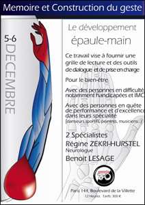Intitulée: Mémoire et construction du geste (travail sur le développement épaule-main) avec le Dr Benoît Lesage (danseur et arthérapeute) auprès de danseurs, musiciens et sculpteurs.
